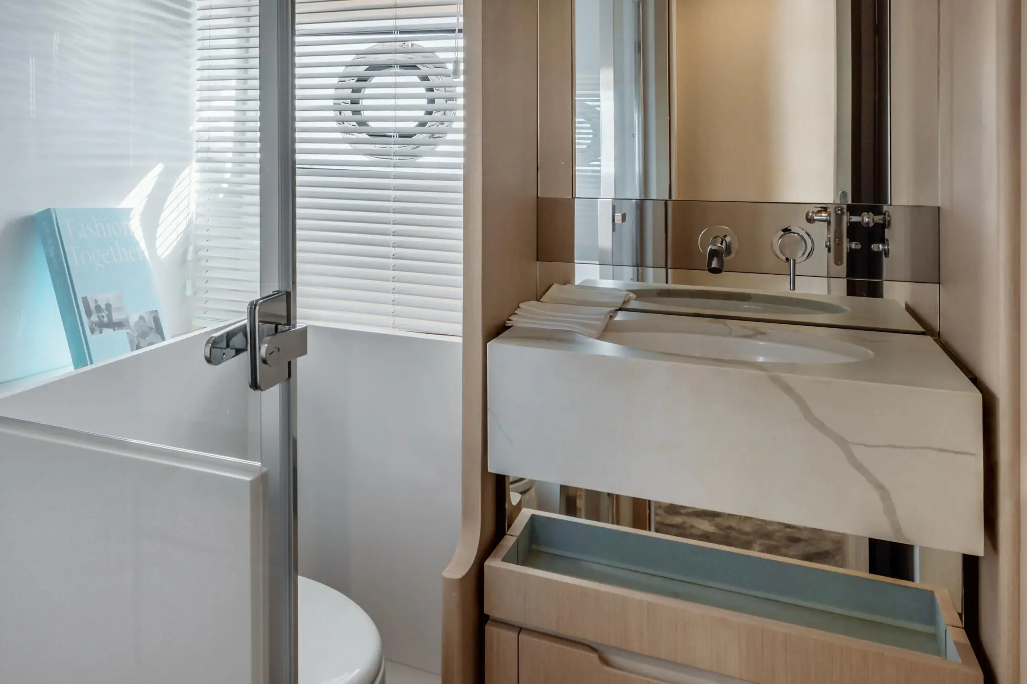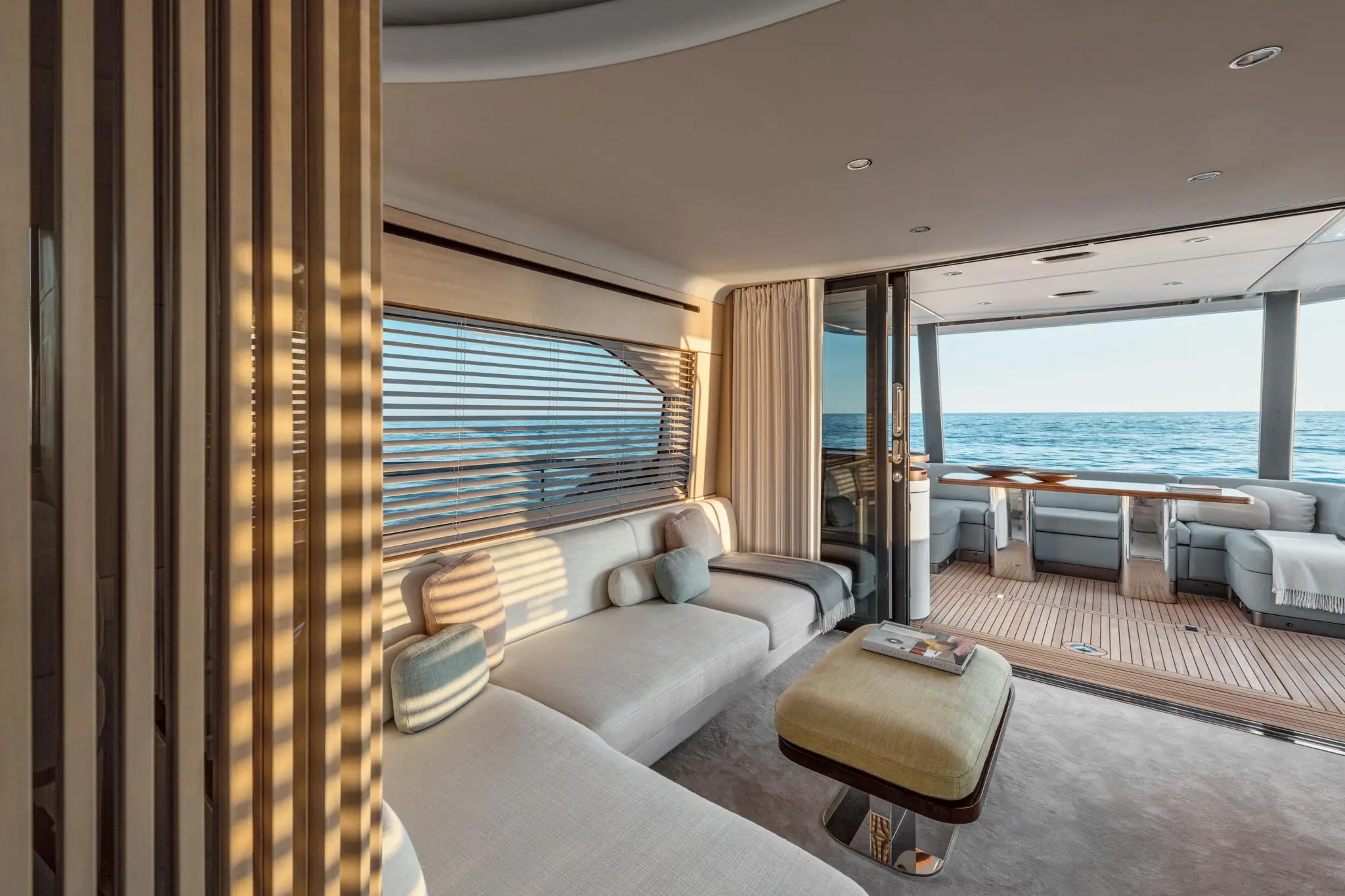 Designed by Achille Salvagni, the Azimut 68 features a sophisticated, contemporary interior with large panoramic windows, flooding the space with natural light. Owners can choose from three distinct layout options, allowing for a personalized onboard experience.