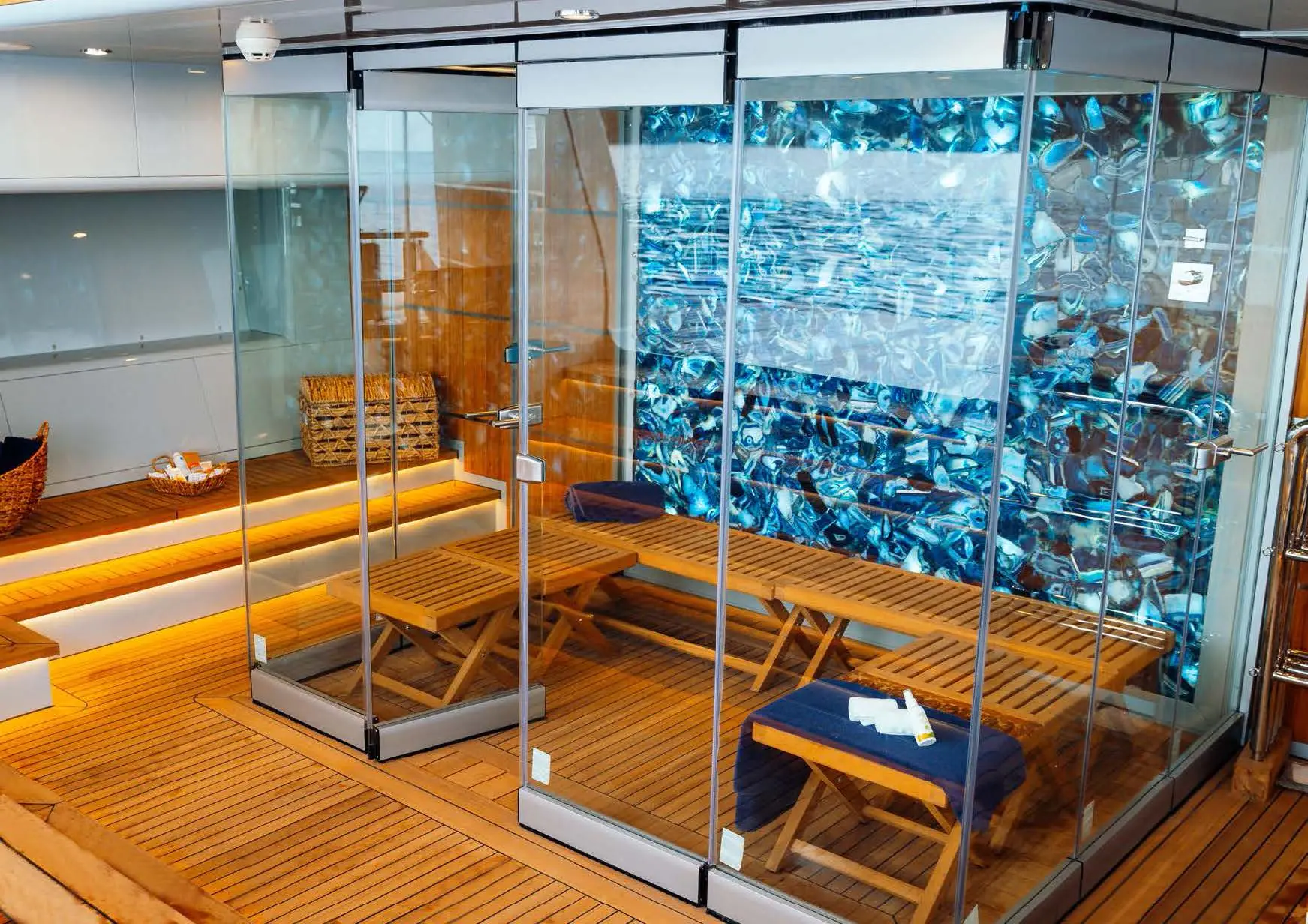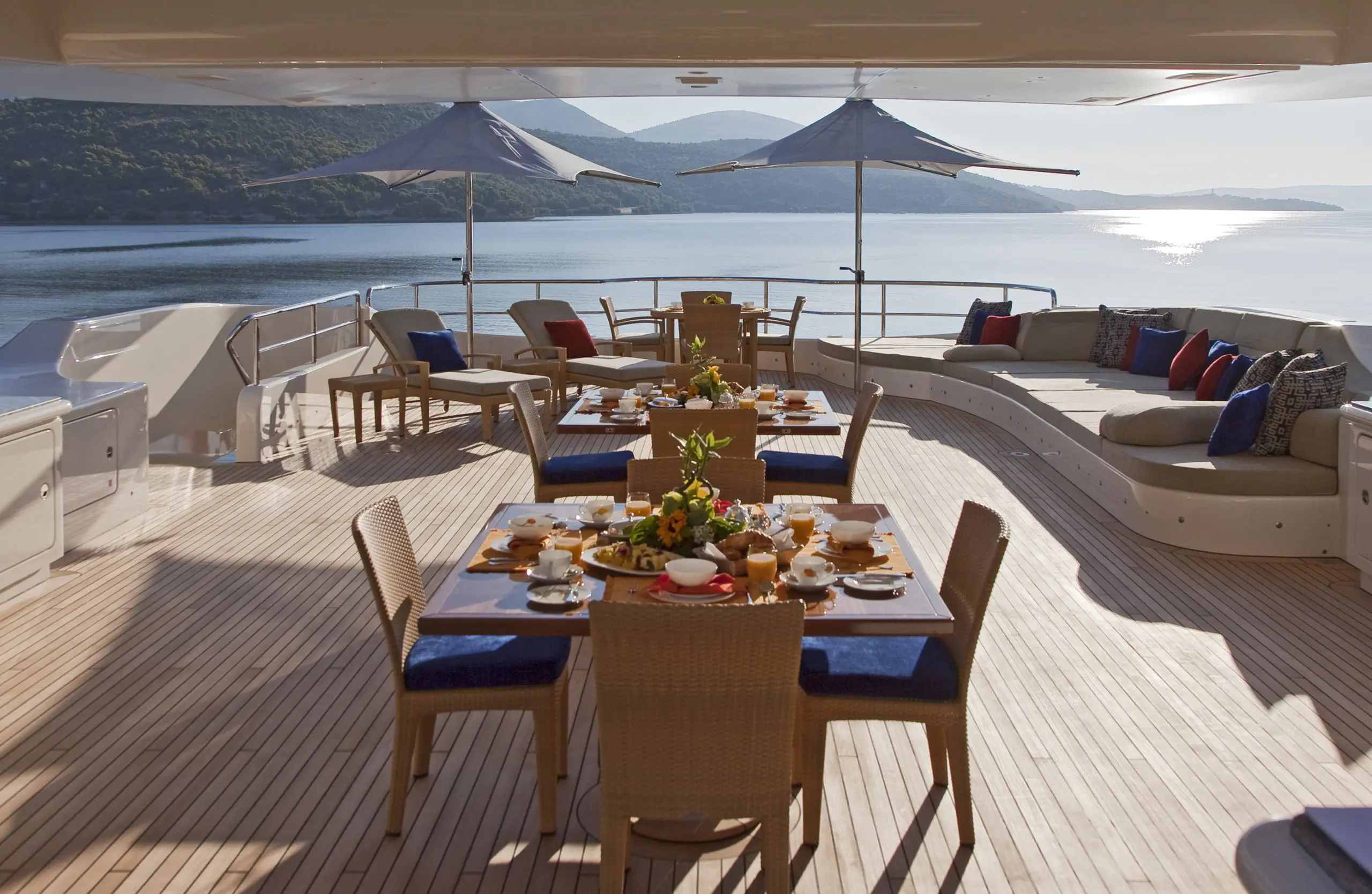 On your charter, you'll find plenty to keep you busy and entertained, particularly a gym with all the latest equipment to maintain your fitness routine. Sit back with a glass of champagne in the deck jacuzzi.
