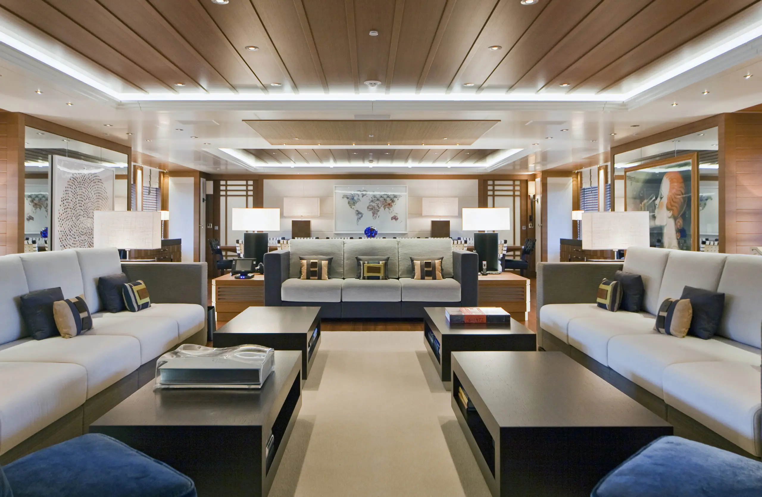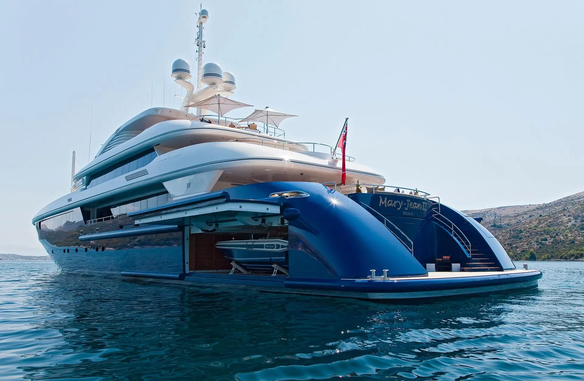 The 61.7m/202'5" 'Mary-Jean II' motor yacht built by the Italian shipyard ISA is available for charter for up to 12 guests in 7 cabins. This award winning yacht features interior styling by British designer Mark Berryman Design.