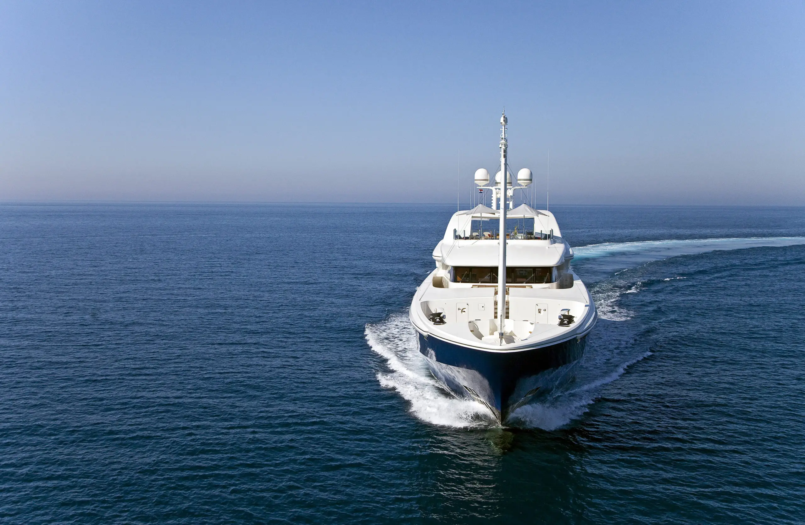 Built with a steel hull and aluminium superstructure, she offers greater on-board space and is more stable when at anchor thanks to her full-displacement hull. Powered by twin Caterpillar engines, she comfortably cruises at 14 knots, reaches a maximum speed of 17 knots with a range of up to 4,000 nautical miles from her 124,000 litre fuel tanks. Mary-Jean II features at-anchor stabilizers providing exceptional comfort levels.