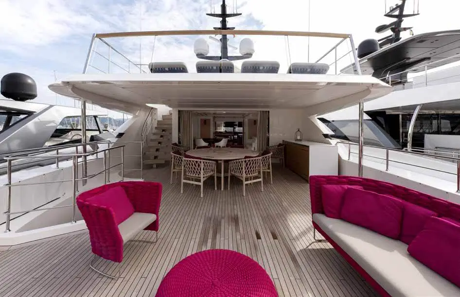 Families will particularly love Mary-Jean II thanks to her child-friendly setup. Built in 2010, She offers guest accommodation for up to 12 guests with a layout comprising a master suite, one VIP cabin, three double cabins and two twin cabins. The bed configuration includes 5 king, 4 singles, 2 pullmans and 2 convertible. She is also capable of carrying up to 15 crew onboard to ensure a relaxed luxury yacht charter experience.