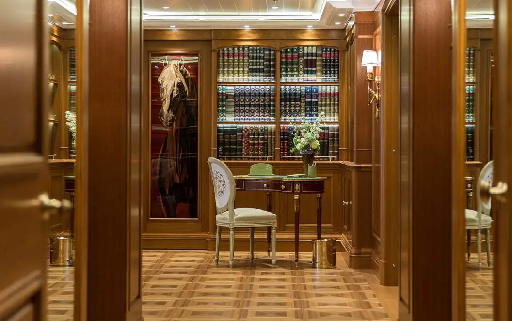 Charter yacht SEA OWL is a yacht that stands out from the rest, taking inspiration from literature to infuse unique details into her design. As guests navigate the vessel, the prose from the carefully curated bookshelves seems to come alive. Each wall features handcrafted details that add to the yacht’s charm and character, while intricate map replicas grace the ceilings, creating a one-of-a-kind interior.
